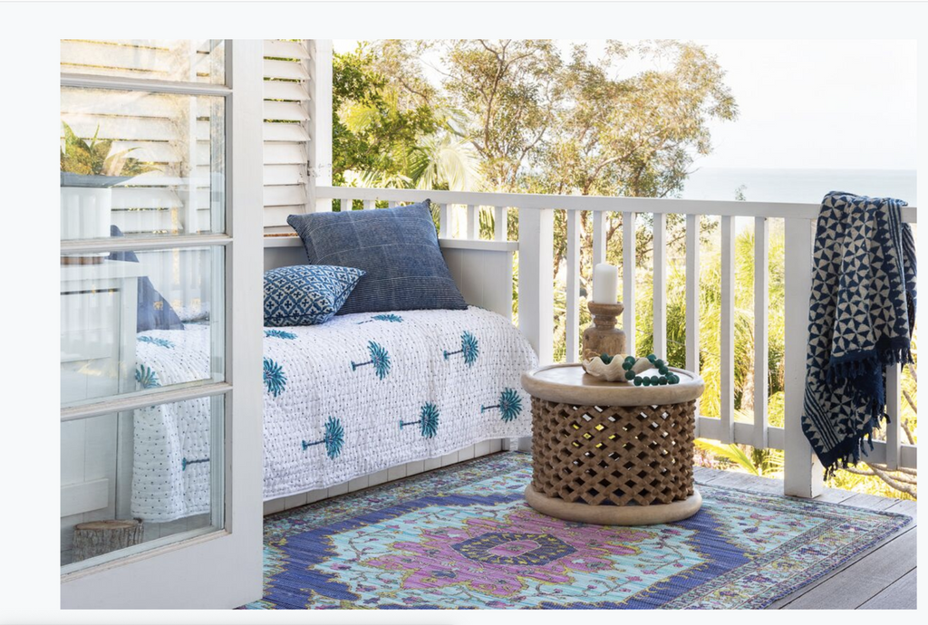 These rugs are made from up cycled cotton and polyester fibres which are collected from textile factories . These are then hand knotted by artisans in villages. Once the rug is crafted it is then digitally printed with design .