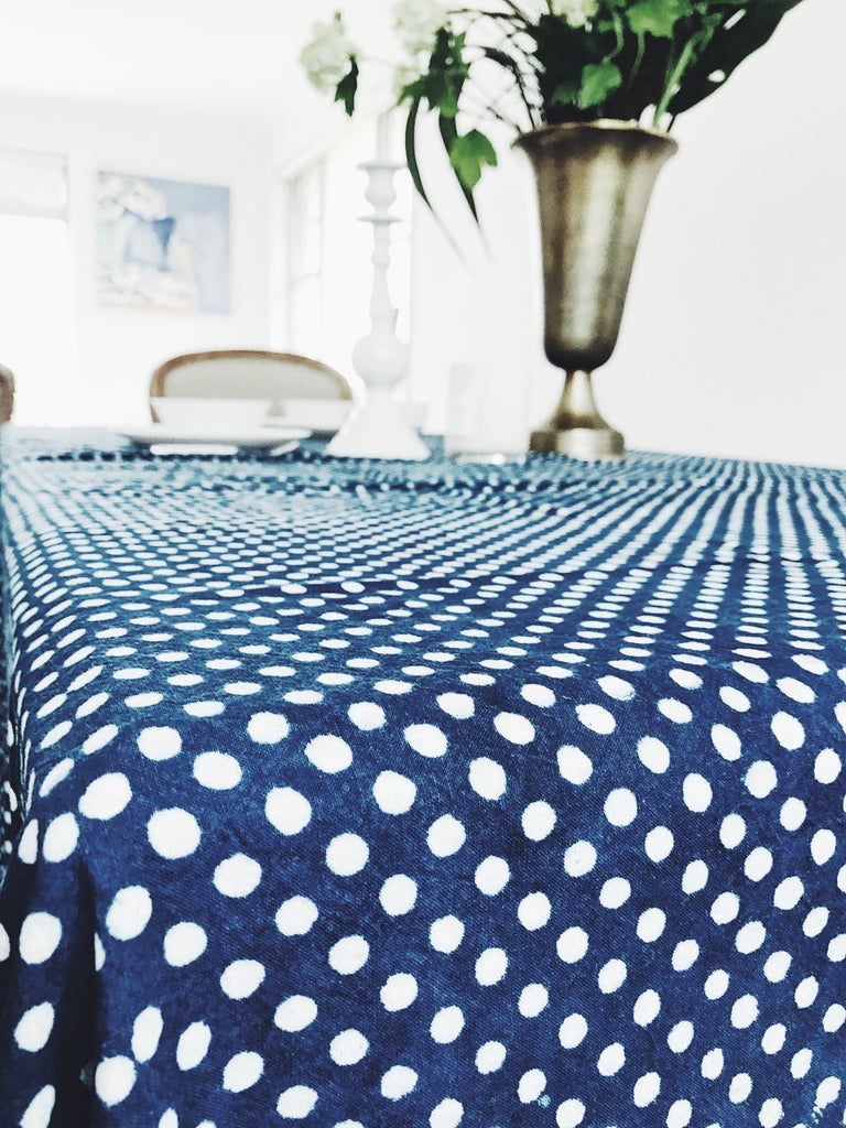 Indigo Dotty Tablecloth (180 X 275 cm)